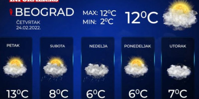 Jutarnja temperatura od -2 do 4 stepena, najviša dnevna od 9 do 14 stepeni.