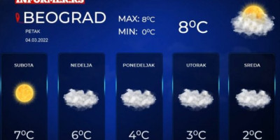 Do 11. marta biće pretežno oblačno, hladnije, u nižim predelima sa mešovitom padavinama, a na planinama sa snegom uz povećanje visine snežnog pokrivača.
