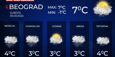 U Srbiji se do 12. marta očekuje hladno vreme za prvu polovinu marta sa jutarnjim mrazevima, dnevnom temperaturom u većini mesta od 2 do 4 stepena, ali i sa učestalom pojavom susnežice i snega.