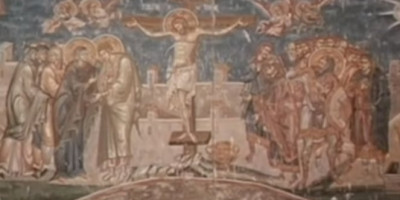 Naime, tu se nalazi čuvena freska Isusovog raspeća sa dva “neidentikikovana objekta” u levom i desnom uglu. Reč je o dva neobična predmeta u obliku suza sa zracima u kojima se nalaze osobe. Zraci stvaraju utisak kretanja, pa oni koji veruju u NLO tvrde da je reč o vanzemaljskim letelicama.