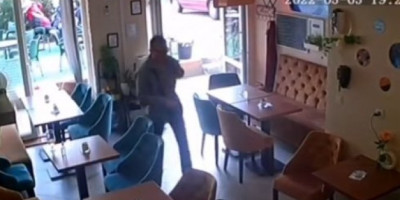Na snimku se može videti da je lopov, koji je sedeo u sam u kafiću strpljivo sačekao da konobarica izađe u baštu kako bi uslužila goste, a zatim je iz šanka ukrao novčanik sa pazarom.