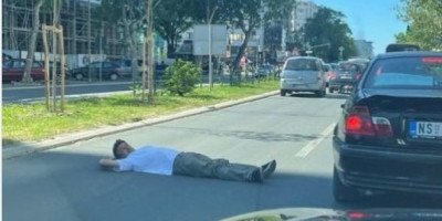 - Nepoznati muškarac legao je na bulevar i blokirao saobraćaj. Ovim postupkom dovodi u opasnost svoj, ali i živote drugih učesnika u saobraćaju - piše ispod fotografije koja je objavljena na društvenim mrežama.