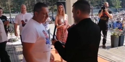 Pred oko 15.000 učesnika iz Srbije i njihovih kolega iz Severne Makedonije, Bugarske i Slovenije, kao i pred mnogbrojnom publikom, predsednik SSP Lazar Ranitović, pozvao je na binu Božidara.