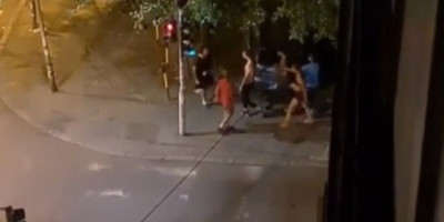 Tuča i napad, reklo bi se, mlađih osoba snimljena je u Južnom bulevaru. Napadnut je mladić u crnoj garderobi koji je u jednom trenutku dobio i udarac u lice, pa je pao na beton.