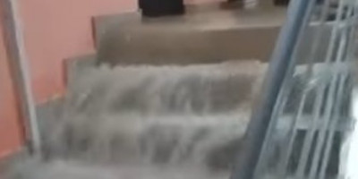 Pored neverovatnih scena sa ulica ovih opština gde se vide vozila koja stoje i ne mogu da prođu zbog bujica na ulicama, na Instagramu su objavljeni i snimci iz stambenih zgrada. Ova konkretno deluje novije, a pogledajte kakva je poplava na stepenicama i u prizemlju.