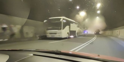 AUTOBUS PUN TURISTA SE ZAPALIO NASRED TUNELA! Putnici preživeli pakao na putu ka crnogorskom primorju, brzom reakcijom vatrogasaca izbegnuta tragedija! (FOTO)