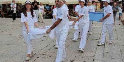 Na kraju su ih zalili litrima pretopa. Prisutni su sa zadovoljstvom uzimali komade lepinje i “sladili” se na gradskom trgu.