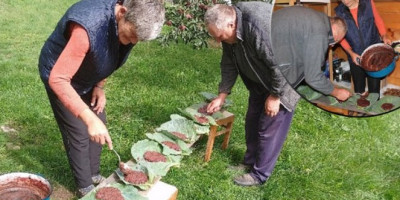 Grujičići liske sa pekmezom suše na dasci u kolibi, a kada se smesa osuši prevrnu je jednom i čuvaju u papirnoj kesi.