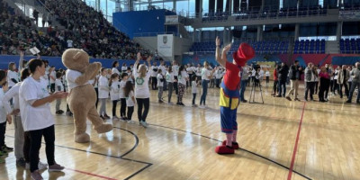 Učesnike i decu u publici, pozdravio je gradonačelnik Zrenjanina Simo Salapura, aktivno učestvujući u vežbama zagrevanja.