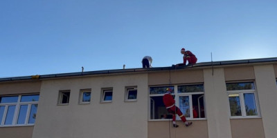 Članovi Gorske službe spasavanja, prerušeni u Deda Mraza, spuštajući se sa krova zgrade, podelili su novogodišnje paketiće deci koja se nalaze na lečenju u valjevskoj bolnici, na odeljenju pedijatrije i dečije hirurgije