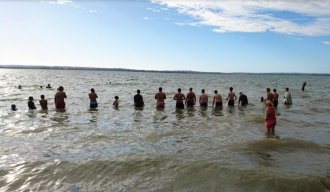Od oko 50 okupljenih, njih 15 je u 18:30 po lokalnom vremenu plivalo za Časni krst. Iako su to kasni poslepdnevni sati, oni su verovatno, zbog vremenske razlike, bili prvi u svetu od naših ljudi koji su plivali za Časni krst.