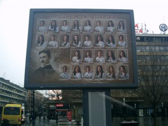 Poster sa slikama kruševačkih Svetosavaca sa Nikolom Teslom istaknut je na bilbordu na glavnom Gradskom trgu i ispred Gradske uprave Kruševac.