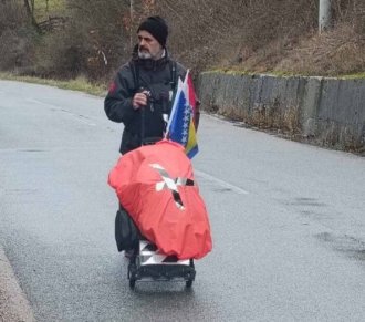 Iako je do sada pregazio 1.500 kilometara, pešačenje ga nije iscrpelo, niti mu nedostaje snage. Svež je, pun pozitivne energije, a dnevno može da prepešači do šezdesetak kilometara
