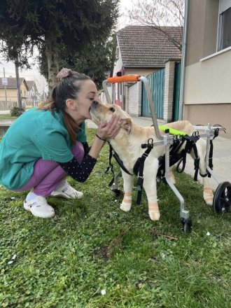 Posle zverskog mučenja nad ženkom labradora u Kikindi, koju je za sada uradio nepoznati počinilac, mučeni pas trenutno se nalazi u invalidskim kolicima, a sve borbe usmerene su da se spase od amputiranja nogu i da dobije protezu, rekla je za Informer doktorka veterinarske medicine Mirjana Dubovečak iz Rumenke koja je prihvatila psa i preuzela brigu o njemu