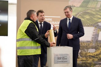 Kamen temeljac u Dobanovcima zajedno sa Aleksandrom Vučićem položio je i izvršni direktor VGP Jan van Gitu gde su ubacili vremensku kapsulu. Srbija iz dana u dan napreduje.