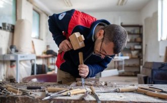 Od orahove i hrastove građe, Vladimir stvara prava umetnička dela kroz unikatne komade nameštaja, stolova, stolica, fotelja, komoda, gelendera, ulaznih vrata... U njegovoj radionici na Beloj Zemlji, nadomak Užica, provodi najviše vremena, a nju je nedavno zamenio stalnim poslom u struci.