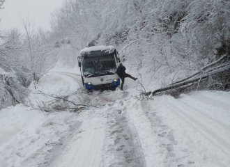 Vlažan sneg koji je pao tokom noći napravio je velike probleme u saobraćaju širom Srbije. Udaljenija sela u okolini Aranđelovca i Topole kao da su odsečena od sveta, jer je na pojedinim lokalitetima palo i do 50 centimetara snega.