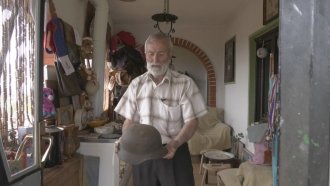 Police i ormari u njegovoj kući puni su raznih predmeta, i na samom ulazu stoji nemački šlem iz Drugog svetskog rata