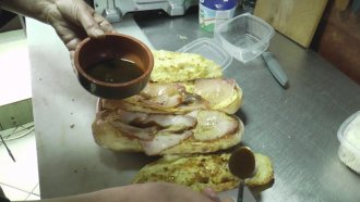 Komplet lepinja jede se prstima, obično prvo poklopac koji se može umakati u sredinu sa pretopom, koliko i kako ko voli. Prazan papir i masan brk govore da je ovo vanvremenski specijalitet i nešto po čemu se Užice i Užičani prepoznaju.