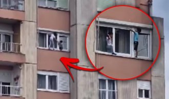 Naime, kako se vidi na snimku dvoje dece na je izašlo kroz prozor stana na sedmom spratu jedne višespratnice i prebacuje se sa prozora na prozor hodajući po simsu!