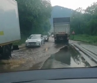 Dodatan problem vozačima pravi i velika kiša koja je "stvorila reku" na ulici.