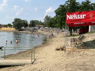 Ima i peska, ležaljki, prodavaca krofni, ali i domaćeg specijaliteta sa sirom, langoša...Samo što je ovde to mnogo jeftinije.