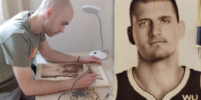 Ivan Đurić, pirograf iz Užica, svojoj kolekciji umetničkih radova rađenih neobičnom tehnikom pirografijom dodao je portret trenutno najboljeg košarkaša Nikole Jokića.