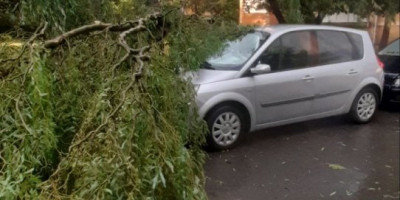 Na brojnim objektima i automobilima načinjena je velika šteta, jer je jak vetar obarao drveće, nosio grane, crepove, kontejnere...
