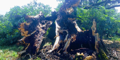 Superćelijska oluja slomila sveto drvo staro 4 veka! Meštani sela Masloševo uz molitvu se opraštaju od hrasta (FOTO)