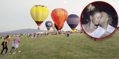 Ovom paru na putu je i prinova, a posetioci međunarodnog festivala balona "Kruševac kroz oblake" gromoglasnim aplauzom pozdravili su buduće mladence.