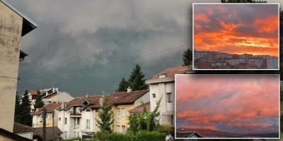 Jako nevreme i danas je pogodilo glavni grad, a u jednom trenutku, kada se mrak već spremao da "padne", a kiša prestala, nebo je poprimilo neobičnu jarko crvenu boju.
