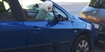 Mala bela kuca bila je u automobilu, parkiranom uz ivičnjak ulice, sa poluotvorenim prozorom, baš ispred jedne prodavnice.