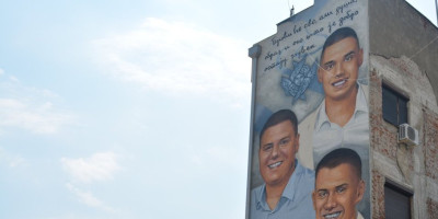 Ognjen Vasiljević, Nikola Zekavica, Luka Mićović i Ivan Stančić nasmejani i srećni baš kakvi su i bili, nikad neće biti zaboravljeni. Na muralu je ispisana i poruka patrijarha Pavla - proći će sve, ali duša, obraz i ono što je dobro ostaju zauvek.