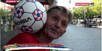 Slavko Anđel, kojeg svi znaju po nadimku - Slive, skoro deceniju i po nastupa na trgu u Zrenjaninu i u 77. godini pika loptu sa dečačkom energijom i entuzijazmom.