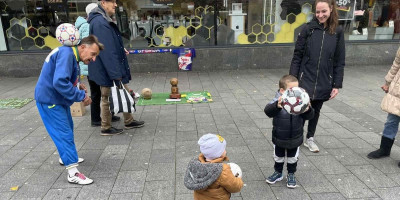 U centru Zrenjanina on je nekoliko sati uveseljavao sugrađane svojim fudbalskim čarolijama. Uz navijačke pesme, popularni Slive, kako ga svi zovu, pimplao je loptu i okupljao publiku, najviše decu, ali i odrasle koji cene njegovu humanost.