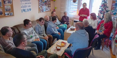 U Dnevnom boravku na svečanom ručku uoči Božića, uz okićenu jelku i prazničnu atmosferu zatičemo u druženju vidno raspoložene korisnike i članove njihovih porodica, koji su pozvani od strane koordinatora Karitasa da prisustvuju obeležavanju praznika.