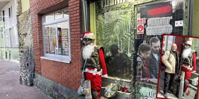 U kragujevačkom naselju Pivara, vlasnik jedne privatne radnje osmislio je odličan marketinški trik. Ispred prodavnice vojne, lovačke i opreme za avanture u prirodi on je postavio lutku Deda Mraza opremljenu kao da je Treći svetski rat upravo počeo!