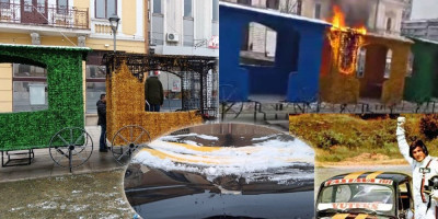 Usred bela dana mladić, koga su snimile kamere s okolnih objekata, zapalio je dečji vozić, deo novogodišnje dekoracije a oštećen je i automobil "fića" eksponat iz legendarnog filma "Nacionalna klasa" simbol kragujevačke "Zastave"