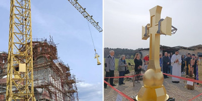 Izgradnja Hrama otpočela je krajem 2019. godine i sada je završena centralna kupola na koju je krst i postavljen.