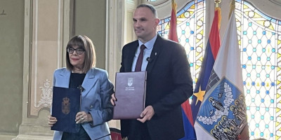 Maja Gojković, potpredsednica Vlade Srbije i ministarka kulture sa gradonačelnikom Zrenjanina Simom Salapurom, potpisala je ugovor o zvaničoj tituli nacionalne prestonice kulture za 2025. godinu