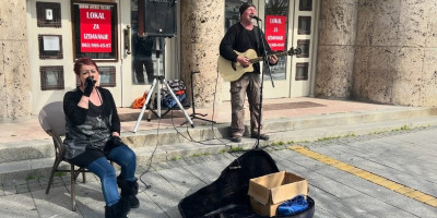 Dok su po želji jedne sugrađanke, izvodili sevdalinku u džez maniru, pritrčao je mladić s kapuljačom na glavi, zgrabio kutiju sa novcem koje im ostavljaju prolaznici, i otrčao.