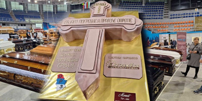 Mrtvački kovčezi, sanduci, krstovi, pokrovi, venci...U niškoj hali "Čair“ na drugom Sajmu pogrebne sve za ukop - čak i frižideri za hlađenje pokojnika pa i kolica za prevoz!