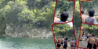 Trenutak kasnije sa grane iz krošnje drveta jedan mladić skače u vodu!