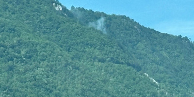 Kako saznajemo požar je izbio pre neko veče usled udara groma. Gori oko 5 ari šume na stenovitom terenu, do koga ne može da se priđe.