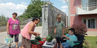 Ispred ove tezge u Čokotu uvek ima kupaca, a uz ukusnu lubenicu ili dinju dobijate i osmehe mališana koji nemaju cenu. Neizostavno je reći da je tu i Lazina sestra Mila (2,5) koja svojim vragolijama razveseli kupce i “natera” brata i Tadiju da slobodno vreme posvete igri sa njom.