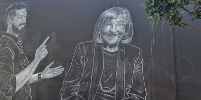 Na njemu se nalaze likovi Mire Banjac, Srđana Dinčića, slikara Dragana Martinovića...Mural je poklon udruženja Art Front sugrađanima, a oni pozdravljaju i kažu da bi voleli da na njemu vide i glumca Petra Kralja!