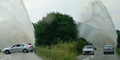 Vodoskok visok nekoliko metara šiklja pored saobraćajnice, a u na lice mesta uskoro stižu ekipe javno komunalnog preduzeća iz Aleksinca pa će saobraćaj na ovom delu putu biti obustavljen.