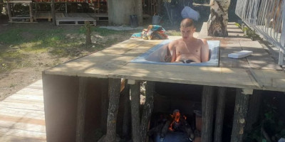 Vlasnici su napravili neobičan đakuzi - kadu, ispod koje lože vatru i tako zagrevaju vodu, koja iz creva dolazi u kadu.