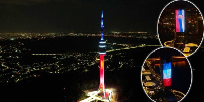 Takođe, jedan od najvećih simbola Beograda, toranj na Avali večeras svetli u bojama zastave Francuske.