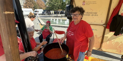 U kratkoj pauzi između dva mešanja po velikoj šerp, baka Anđa, penzionerka iz Zrenjanina kaže da je važno da paprika bude crvena, zdrava j jedra.